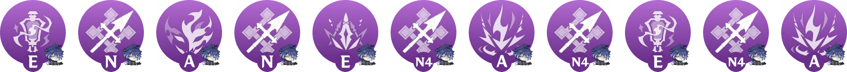 Les dégâts de ses attaques normales sont plutôt faibles, et il n’est donc pas crucial de suivre à la lettre le nombre indiqué ici tant que vous générez régulièrement de l’énergie avec. Parfois, il faudra également ajuster pour esquiver des attaques ennemies ou se repositionner, et le timing des déchaînements peut varier.