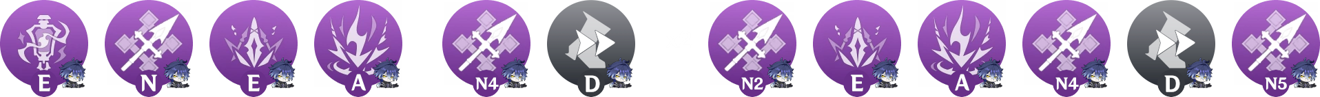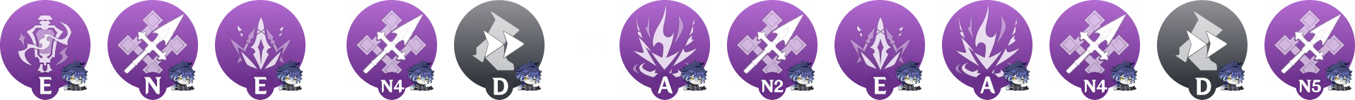 Combo : 58,2% / 58,8% / 72,8% / 41,7% ×2 / 100% DGT attaque chargée : 115% DGT Lances du nord : 174,8% TdR de Lances du nord : 6 s Durée de flamme manifeste : 10 s TdR : 16 s