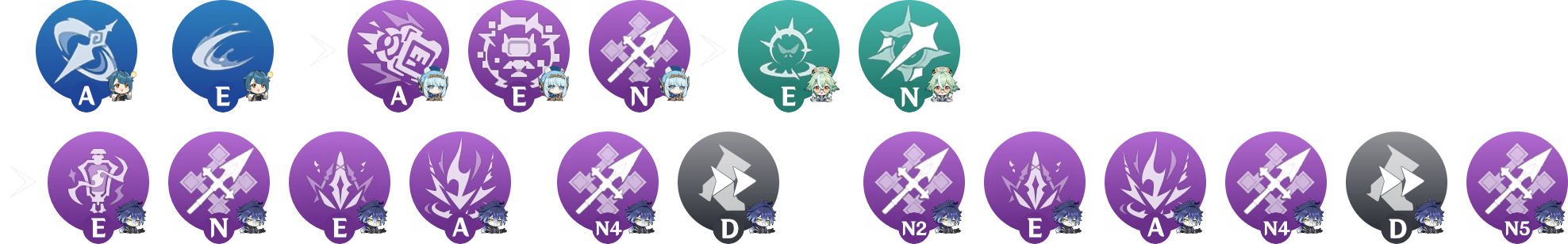 Pendant 6 s après l'utilisation de sa compétence élémentaire spéciale Lances du nord, le déchaînement élémentaire Rituel ancien : Visite de la nuit de Flins est remplacé par le déchaînement élémentaire spécial Symphonie tonitruante.