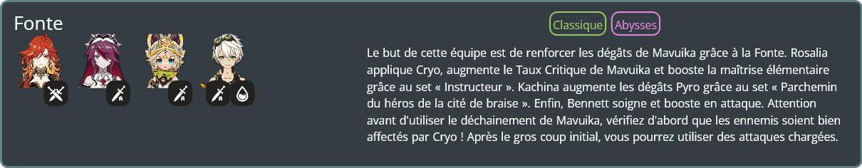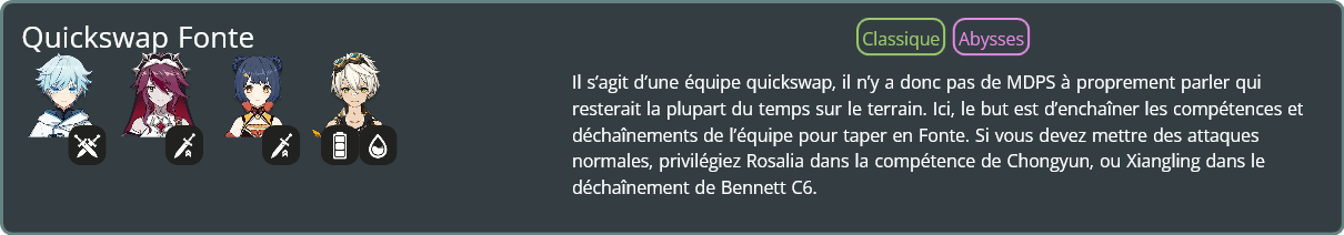 N’hésitez pas à consulter notre guide dédié à la théorie de la jauge élémentaire, pour en savoir plus sur le fonctionnement de ces équipes !