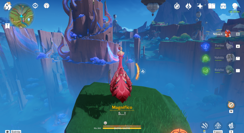 Transformez-vous en Qucusaure et placez-vous au bord de la falaise pour vous préparer à sauter. En contrebas se trouve un anneau de phlogistique : atteignez-le grâce une attaque plongeante au moment où Magnifico dit « Clic ! ».