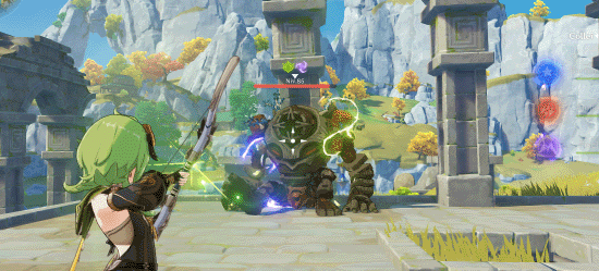 Si l’élément Anémo entre en contact avec d’autres éléments, une Dispersion peut être déclenchée. La Dispersion inflige des dégâts de l’élément correspondant en zone.