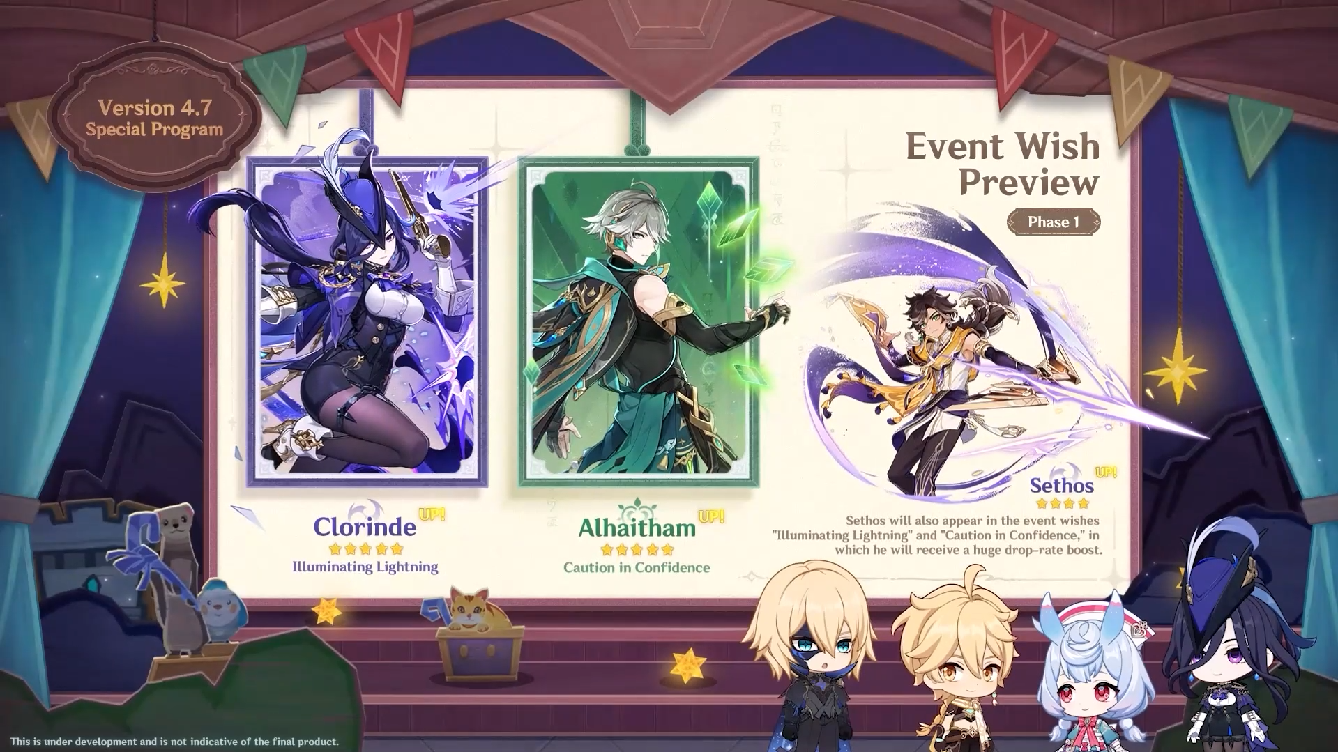 Dès la fin de la mise à jour vers la 4.7, soit le mercredi 5 juin à 05 h 00, vous pourrez ainsi retrouver Clorinde et Alhaitham ! Ils seront accompagnées du nouveau 4★ Électro, Sethos.