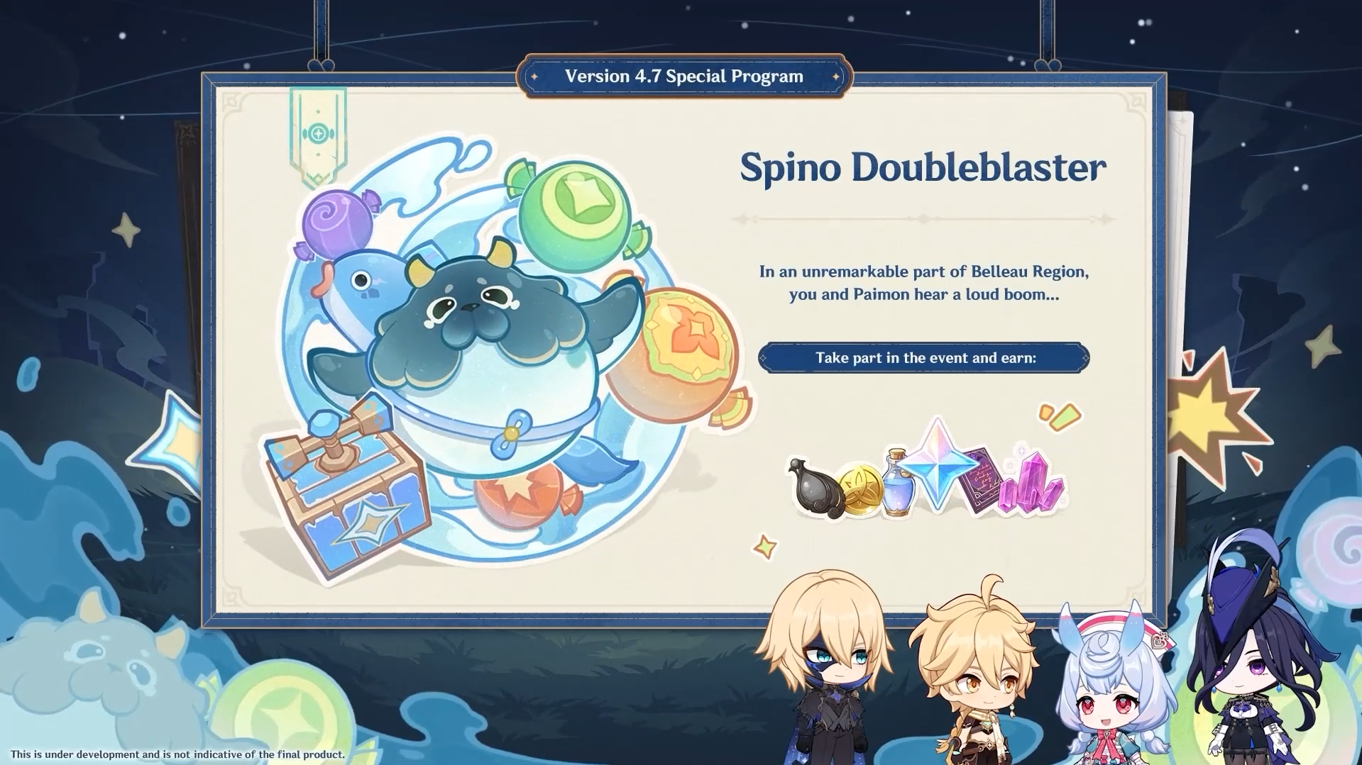 Afin d’améliorer la sécurité à travers tout Teyvat, les Millelithes et les forces armées des pays voisins organisent ensemble un jeu coopératif, à la recherche de moyens d’améliorer leur stratégie militaire.