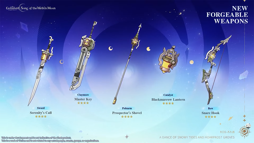 De nouveaux plans de forges pour une nouvelle série d’armes craftables seront également disponibles. Ils seront récupérables à la forge de Nod-Krai, au Village de Nasha ! Les statistiques de ces armes n’ont cependant pas été révélées.