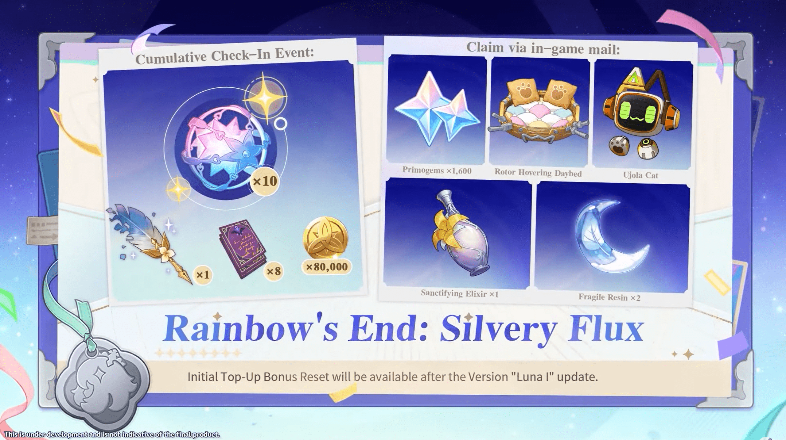 Plusieurs récompenses seront récupérables via la messagerie en jeuà partir du 28 septembreet jusqu’à la fin de la mise à jour Luna I :