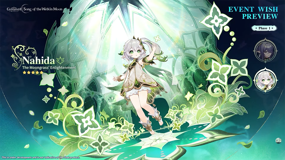 La première partie de la mise à jour sera bien chargée concernant les bannières : nous retrouverons la nouvelle 5* Lauma, accompagnée de Nahida, l’Archon Dendro. La bannière nostalgie de Sumeru fera également sa toute première apparition !