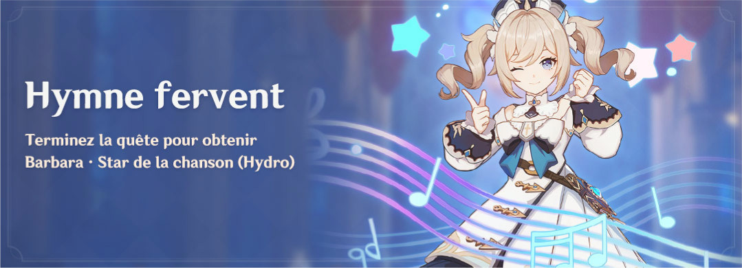 Une nouvelle quête « Hymne Fervent » (AR 18) vous permettra d’obtenir définitivement Barbara !